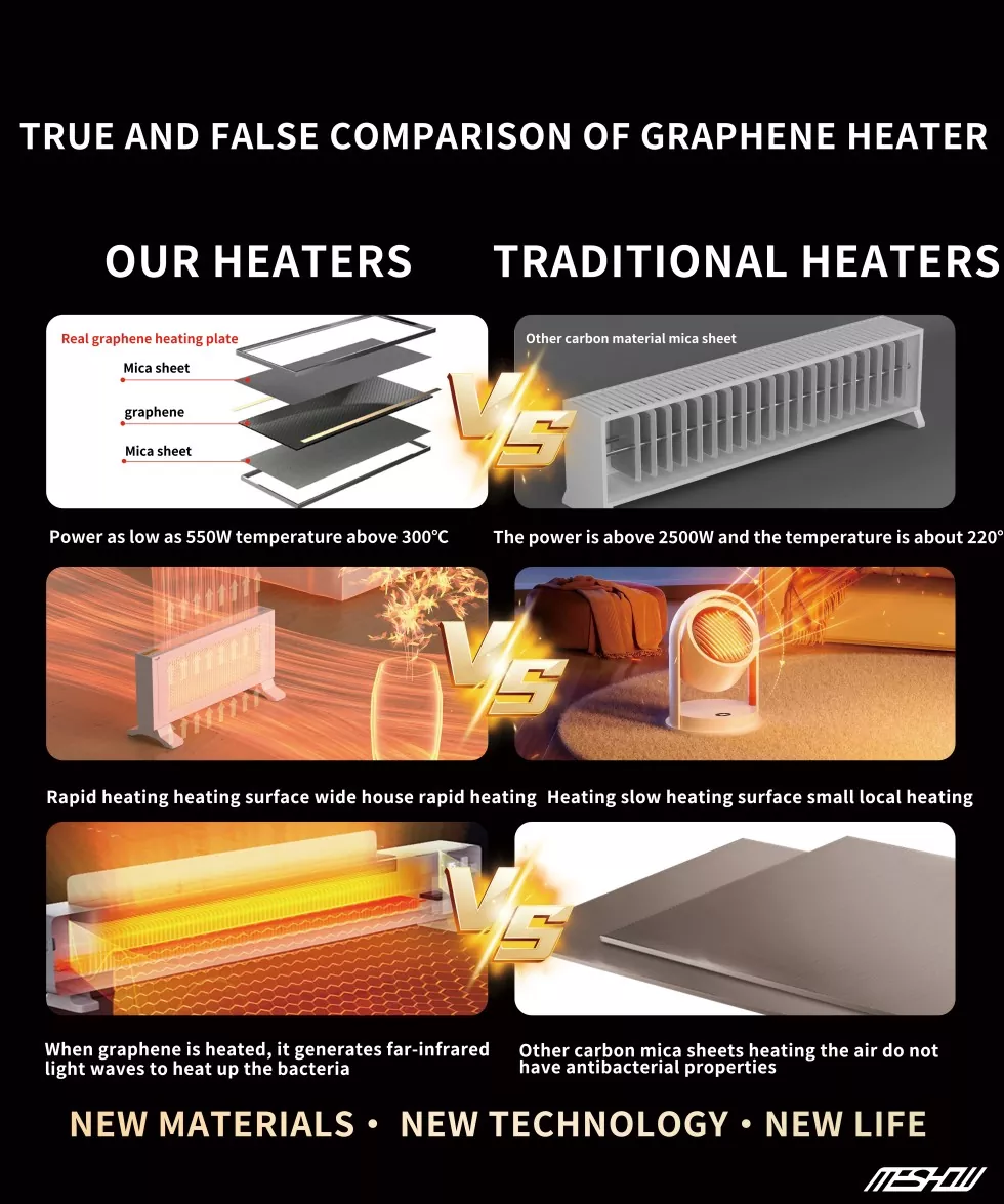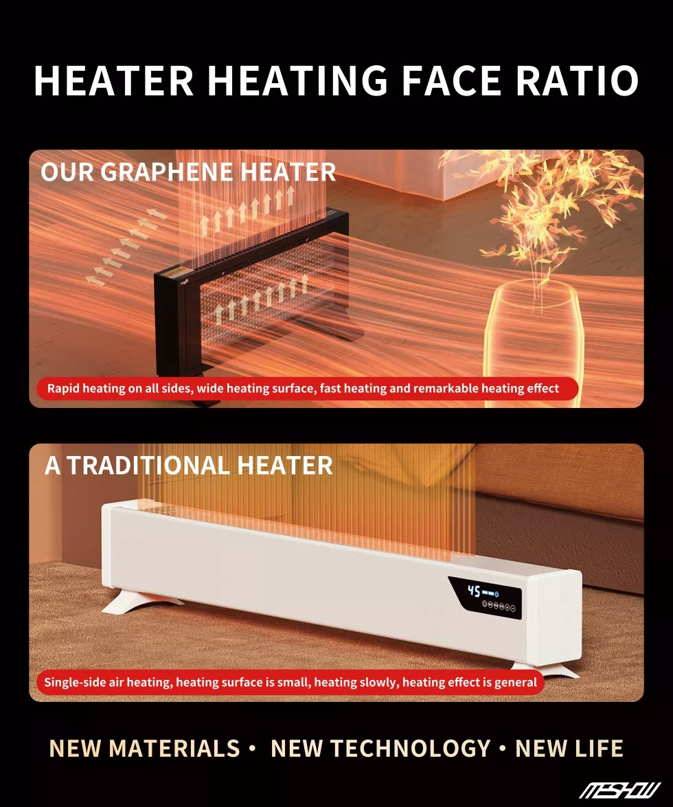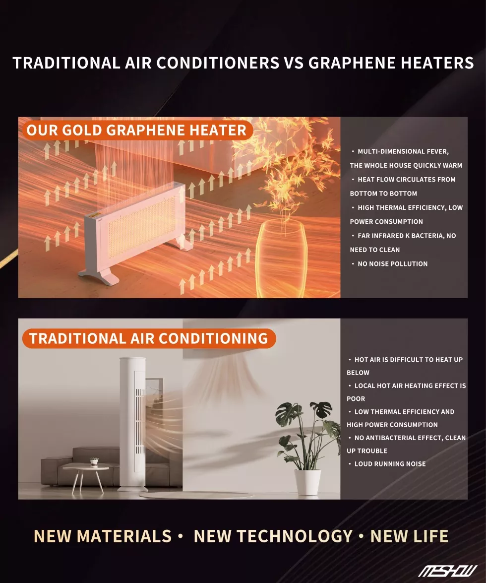 Meshow favorise les radiateurs verticaux de graphène blanc de haute qualité 1800W sur les marchés nationaux et internationaux. Avec la technologie de chauffage du graphène et une économie à haute efficacité et à l'énergie, il est très favorisé par les utilisateurs de la maison et du bureau et est devenu l'équipement de chauffage préféré. Le radiateur est fait de matériau de graphène, qui atteint une conversion à grande vitesse de l'énergie électrique en énergie thermique avec une conductivité thermique ultra-élevée, entraînant un chauffage rapide et uniforme. Son mode efficace crée d'excellents effets d'économie d'énergie, particulièrement adaptés aux saisons d'hiver froides, offrant une chaleur continue.